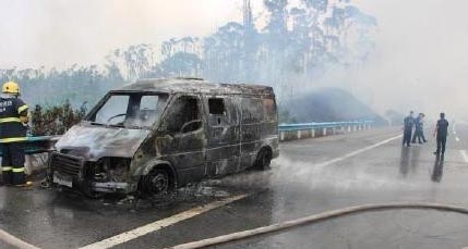 4月15日11時,廣西橫縣六景鎮(zhèn)至欽州港高速距金桔收費站約1公里處,一輛由南寧市開往欽州產(chǎn)業(yè)園區(qū)的運鈔車起火,大火引燃了11箱鈔票和路邊的灌木叢,引發(fā)了熊熊山火?;饎蓦S后被趕到的消防官兵撲滅。
