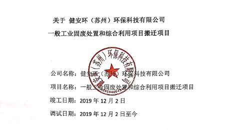 2020-04-03關(guān)于健安環(huán)(蘇州)環(huán)??萍加邢薰疽话愎I(yè)固廢處置和綜合利用項目搬遷項目